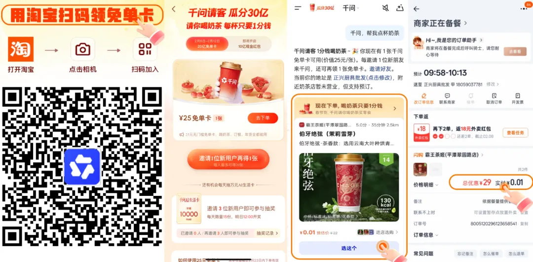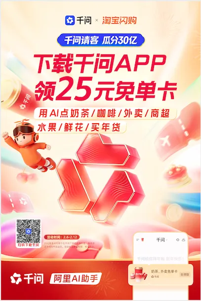 年底 AI🤖千问 APP 陪平潭人过新年!春节狂撒 30 亿福利,第一波 20 亿外卖补贴重磅来袭,专属免单卡人人可领~