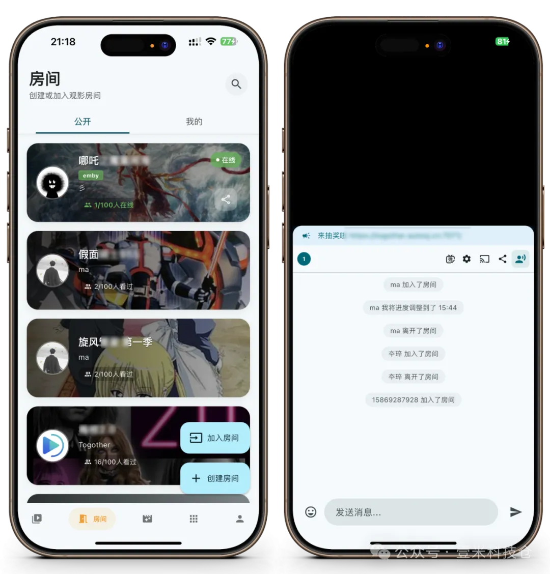 还内置公开房间也可以创建房间和朋友一起,还可实时聊天,