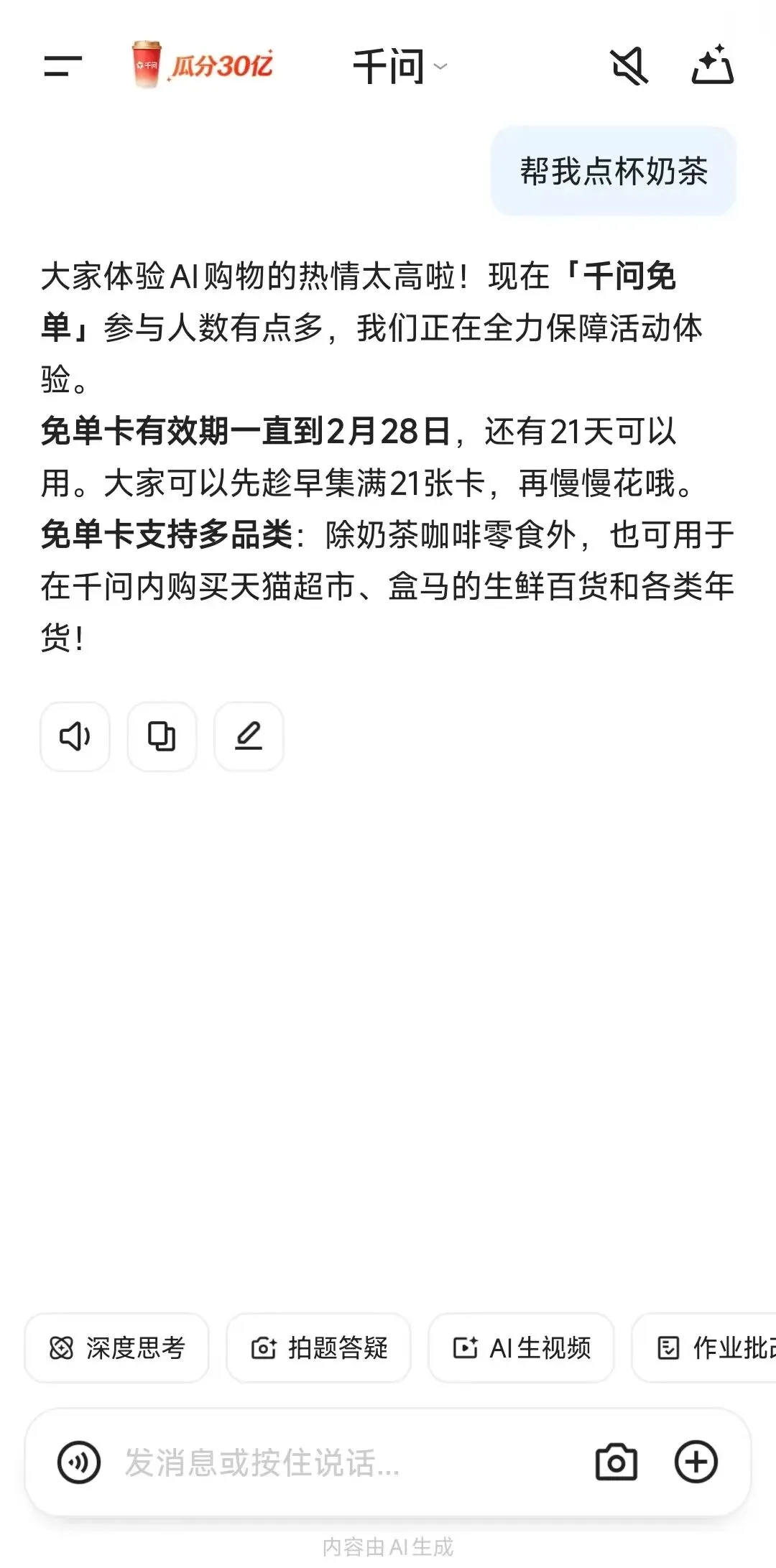 千问APP狂撒30亿,25元免单卡攻略来啦