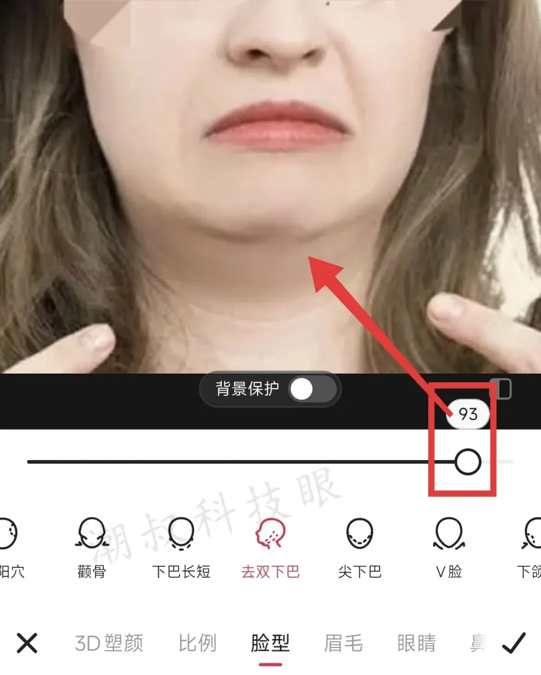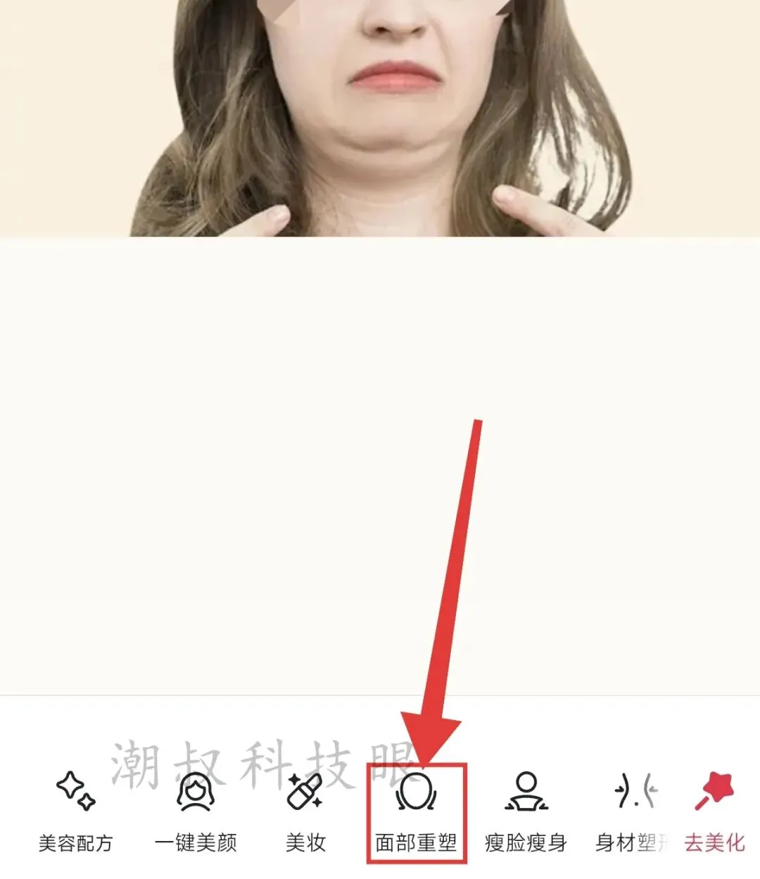 双下巴怎么修图?美图APP一键去除 话说,胖瘦这个事吧,很多时候身不由己,尤其是脸部的赘肉。别的不提,就拿双下巴来说,拍出来的照片双下巴很难看,怎么才能修掉双下巴呢?很多人用P图软件不太熟,担心不好操作,本文就教你使用美图秀秀(以下简称:美图或美图APP)一键去除双下巴。 第一步,打开美图APP,点击首页功能区的「人像美容」按钮,然后添加自己带有双下巴的照片。 第二步,当照片加载完成以后,在美图APP的底部菜单栏找到并点击「面部重塑」按钮,如下图所示。 第三步,在弹出的界面中,依次点击「脸型」→「去双下巴」,如下图所示。 第四步,随后拖动「去双下巴」进度条,根据双下巴的轻重,如果比较轻通常四五十就够了,严重点的可能要拉到90以上效果才比较好。 怎么样?是不是很简单呀,你学会了吗?关于美图的使用,你还有什么疑问,欢迎在评论区留言。 -END- 温馨提示:本文由潮叔科技眼原创,部分图片来源网络,侵删联系后台,感谢~