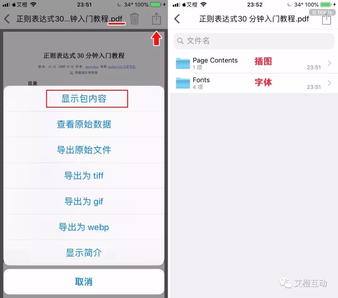 提取文件内素材:电子书, Office 文档,pdf,sketch,点击右上分享→ 显示包内容。
