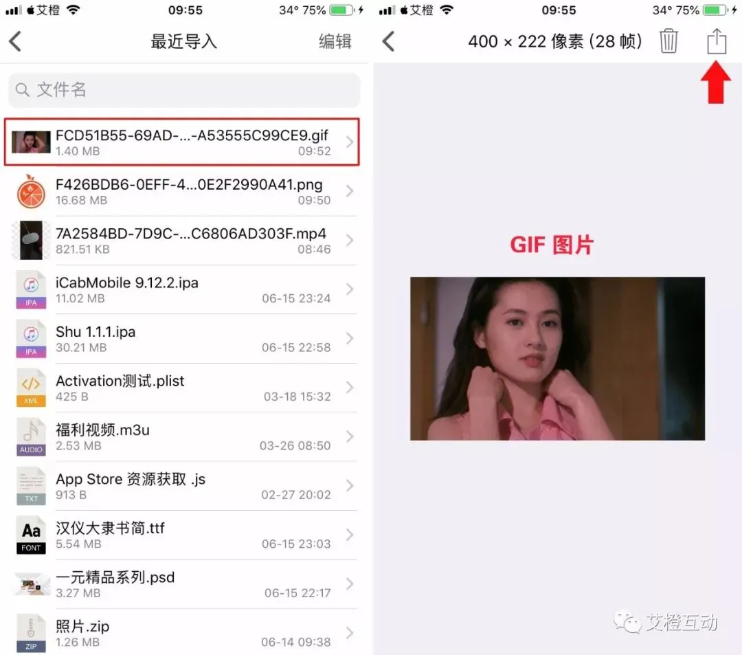 例如GIF 图片,预览我们点击右上角分享更多按钮。