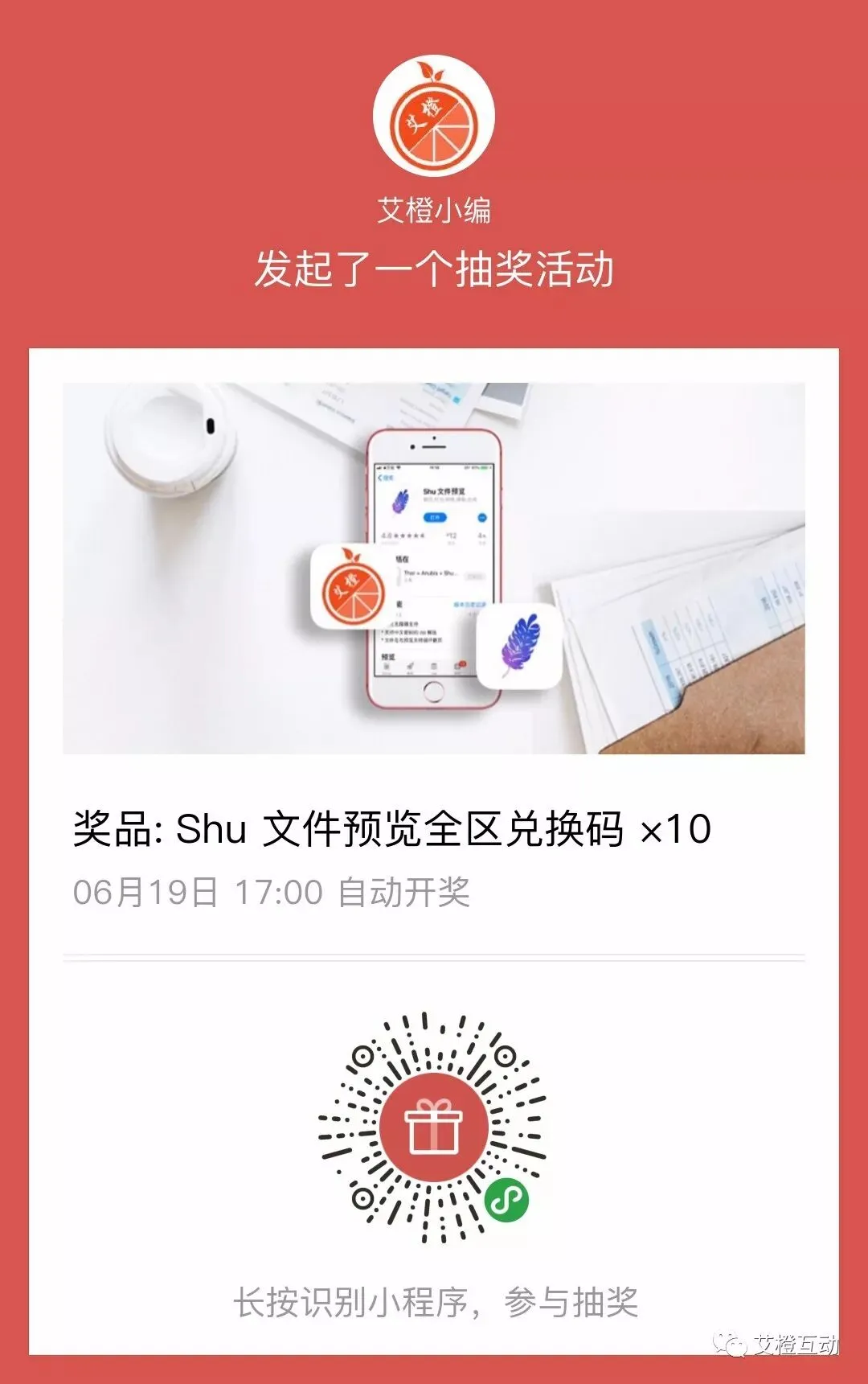 中奖用户分别获得价值¥30 的Shu 文件预览应用软件兑换码一个。