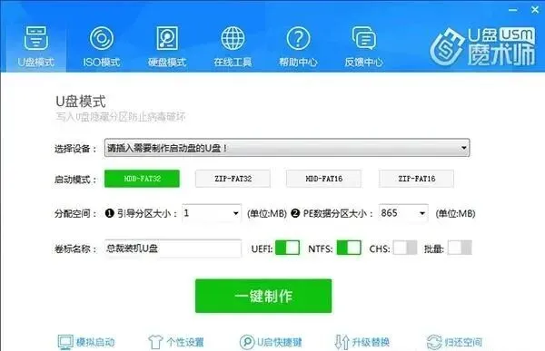 U盘魔术师,简称USM,由系统总裁网站开发研制,是一款面对移动设备,光盘设备,本机系统的PE系统的制作工具,界面友好、简单易用、功能全面、自定义强,是装机人员必备工具。