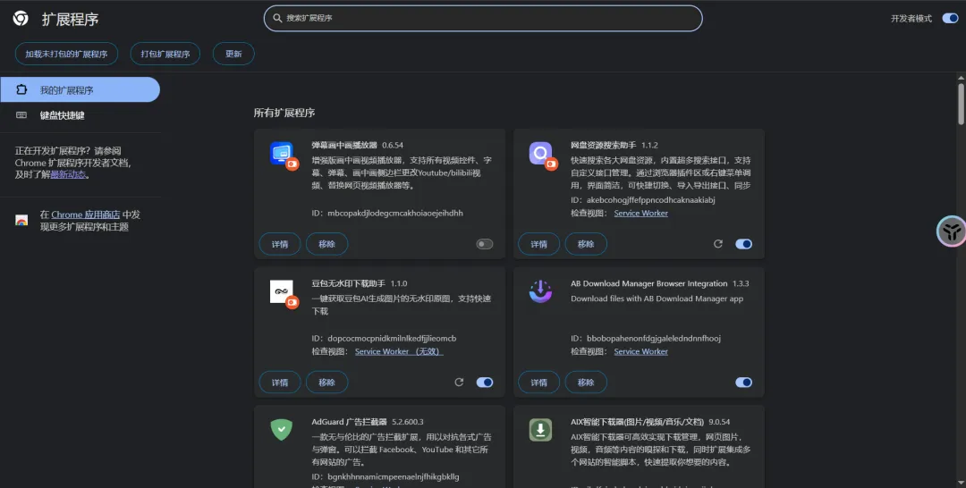 然后只需要将这个压缩包,拖动到浏览器里的扩展管理页面即可