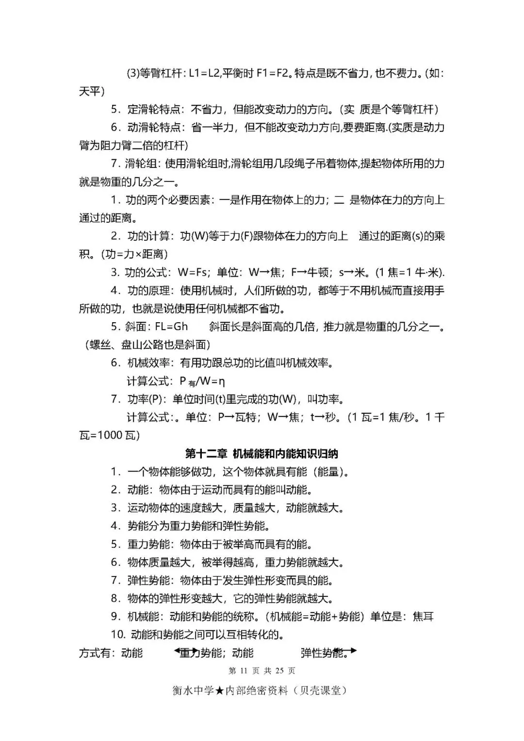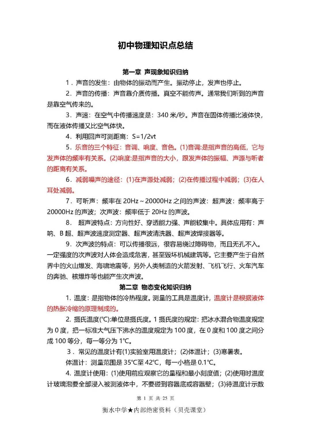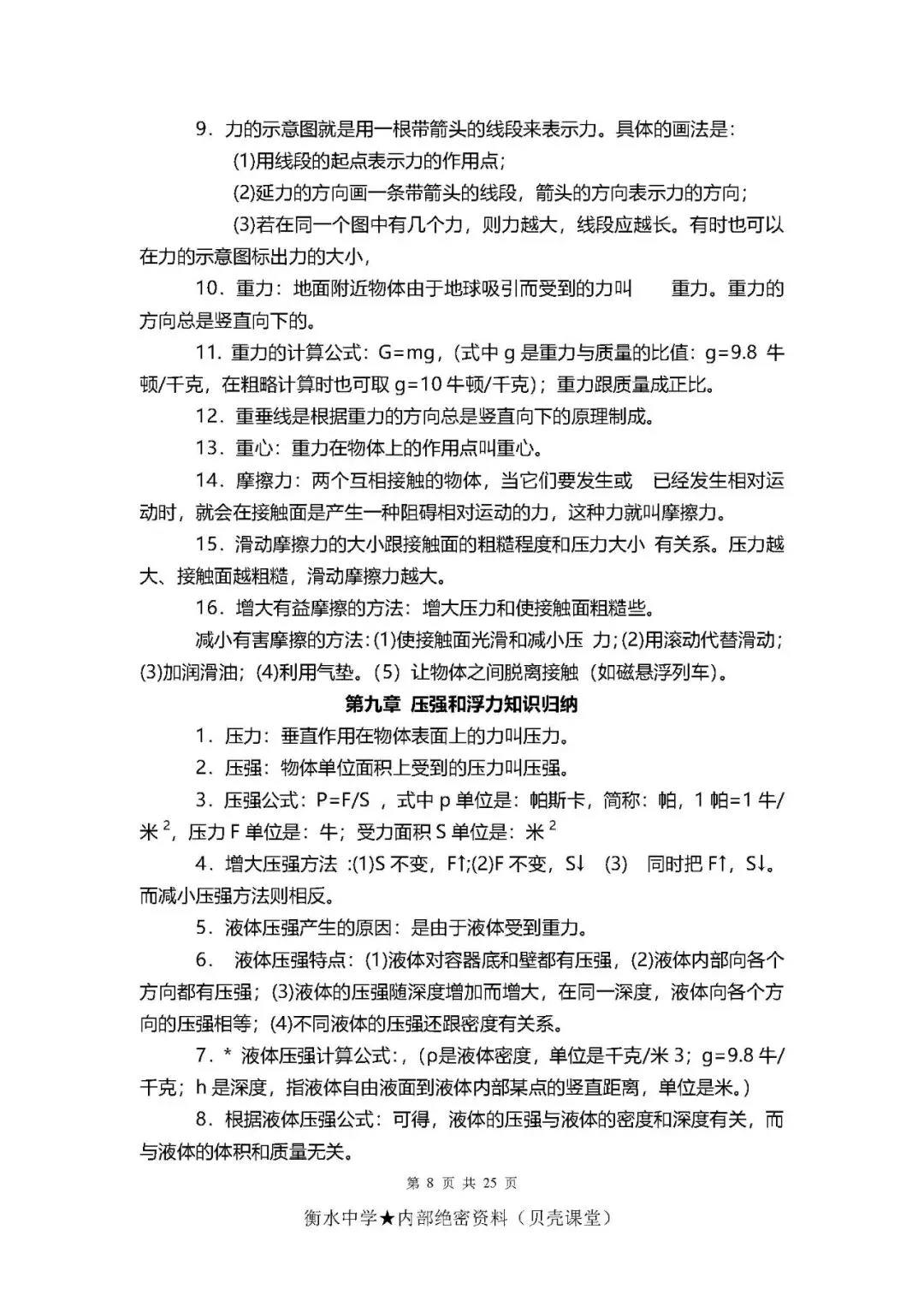 初中物理考点+公式总结(PDF电子版,可下载打印)