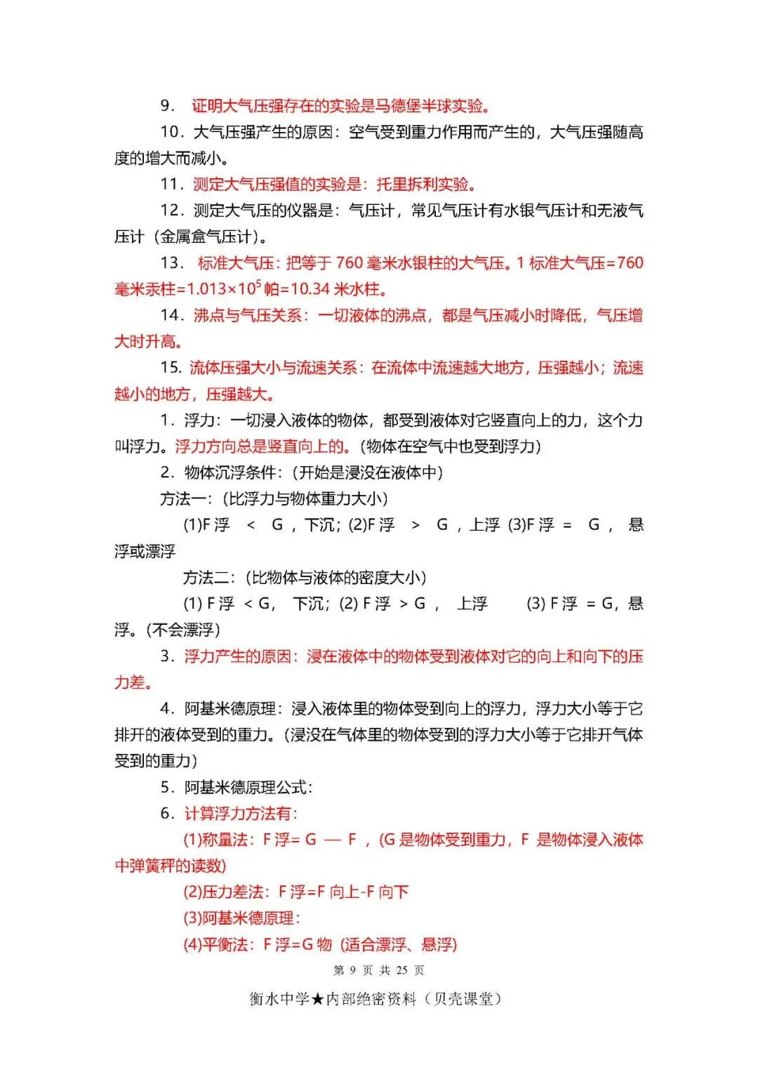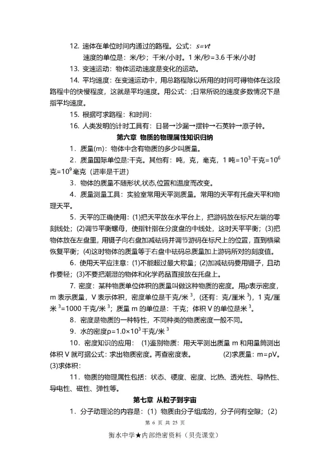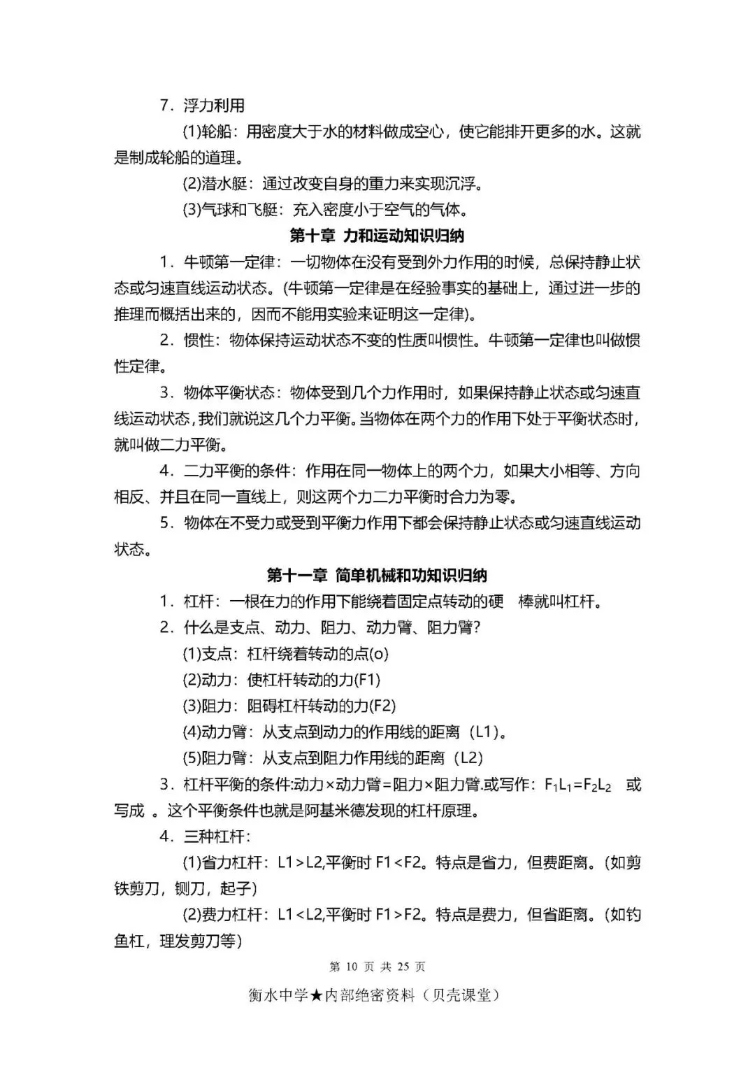 初中物理考点+公式总结(PDF电子版,可下载打印)