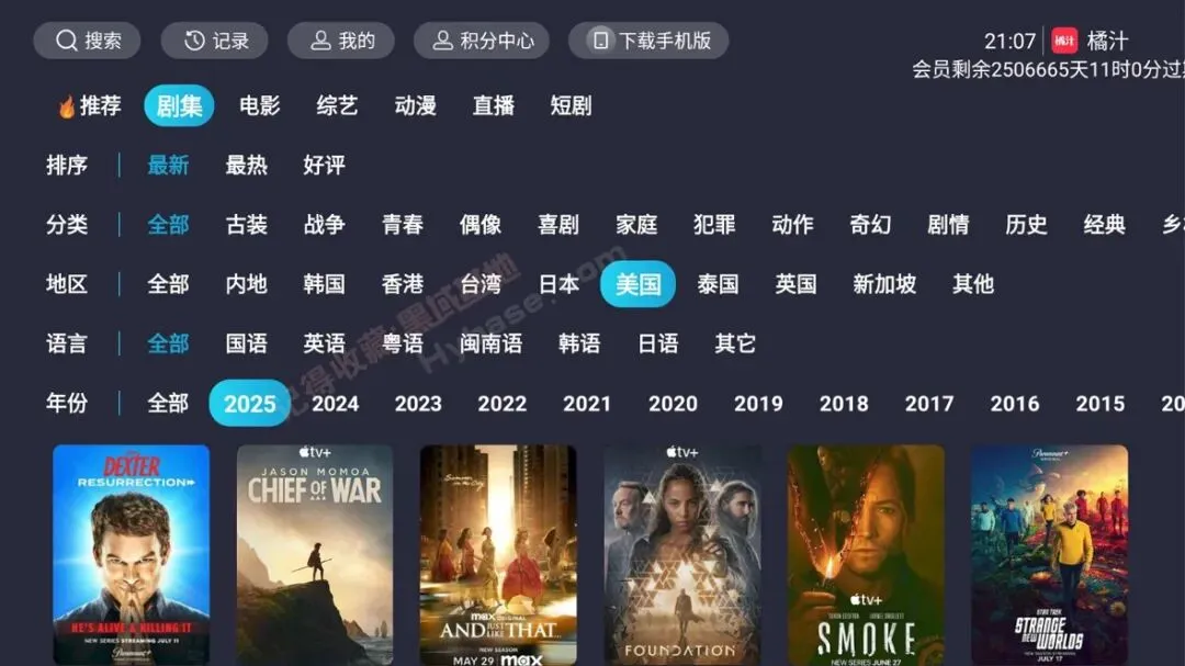总而言之,对于习惯在电视上观看追剧看影的,那么橘汁TV大屏观影体验还算不错的,界面也足够简单简洁大气,一点不花里胡哨,轻松沉浸式观影!看超清4K画质注意宽带网络是否满足,如果出现卡顿可降低播放画质试试,播放失败的点切换线路,尝试切换播放内核看看!
