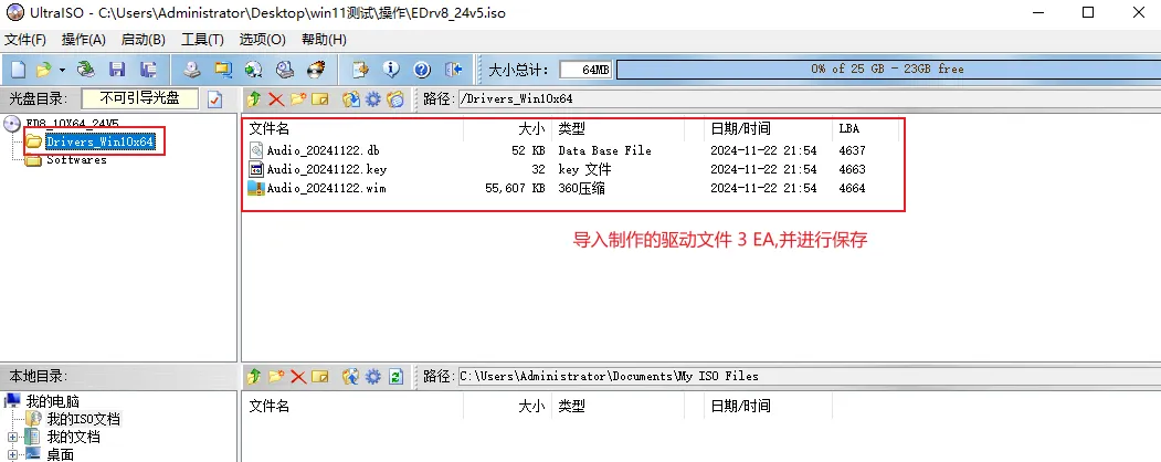 1. 使用 UltraISO 打开万能驱动8的.iso文件,打开其 Drivers这个文件夹,将刚生成的驱动包拖拽进去并进行保存。
