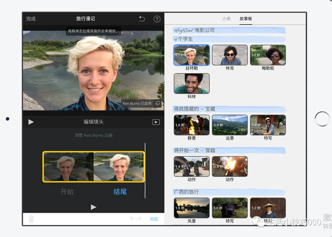 你拥有数百条视频,和一个成为电影制作人的宏伟梦想。有了 iMovie 预告片功能,你可以运用各种素材,快速创作出富有趣味的预告片,而且看起来就像好莱坞出品的一样。这里的模版涵盖了各种各样的电影类型。你可以从中任意选择,再加上你的工作室标识,输入片名字幕和演职员表,然后将照片和视频添加到故事板。无论你正在使用 iPhone、iPad 还是 Mac,轻松几步一部超级大片眼看大功告成。