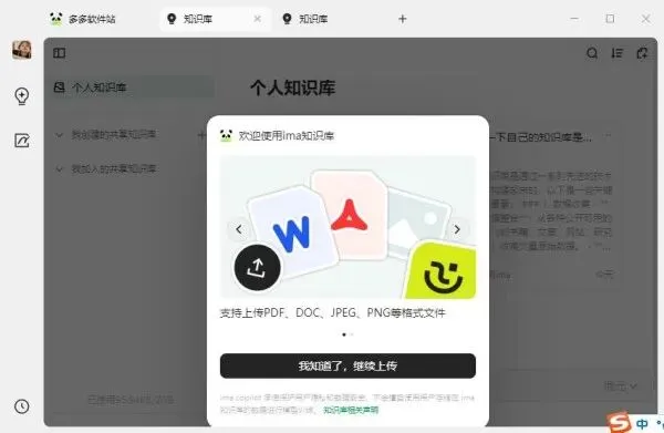 ① 上传PDF、DOC、JPEG、PNG等格式的内容至知识库