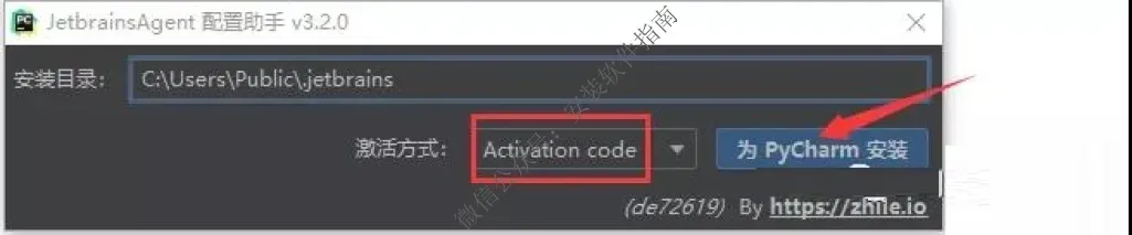 19、激活方式选择默认,然后点位pycharm安装
