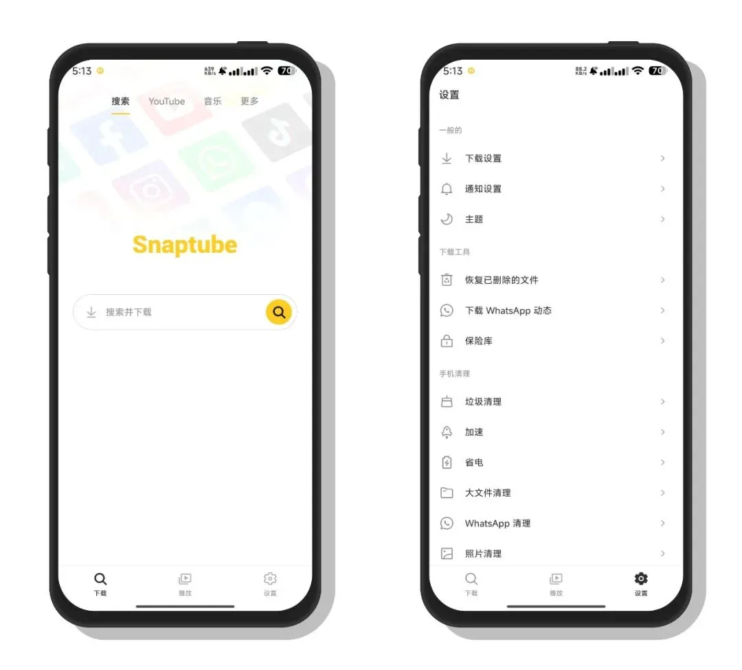 SnapTube是一款专为安卓设备设计的视频下载工具,支持从YouTube、TikTok、Instagram、Facebook等上百站点下载视频。