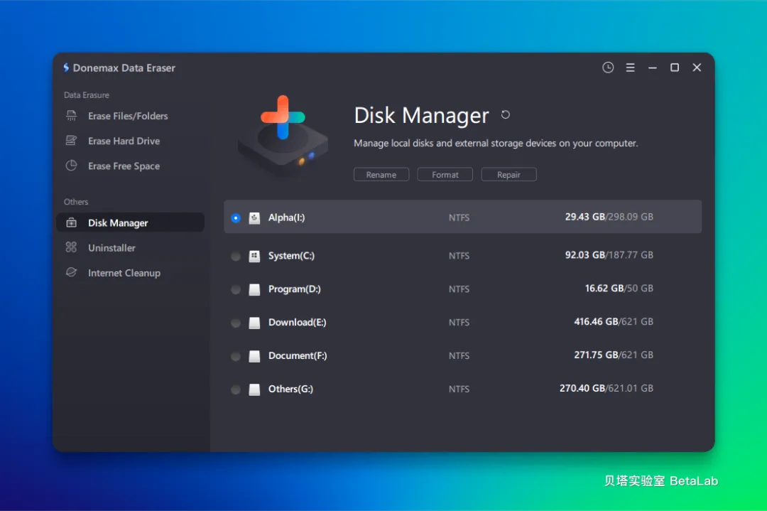 Donemax Data Eraser 提供军事和政府级别的数据清除算法,一旦数据被 Donemax Data Eraser 删除,数据将永远消失,任何数据恢复软件都无法恢复。