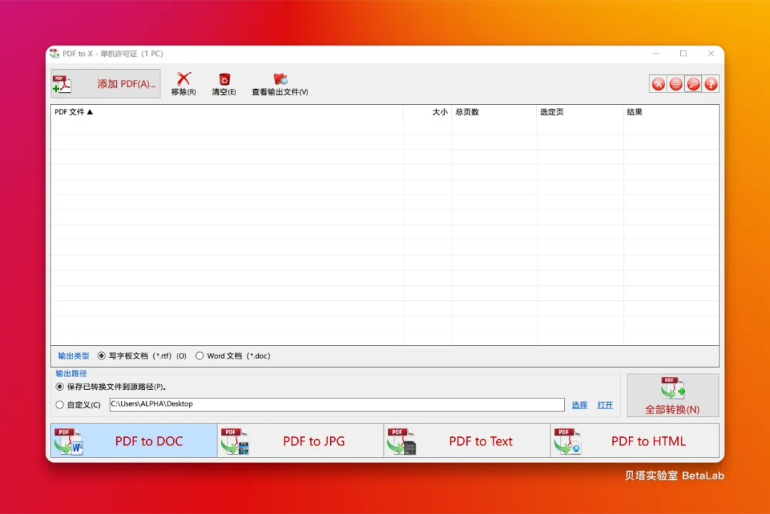 PDF to X,单看这软件名就能知道此款软件的强大 —— 可将 PDF 文件转换为多种格式的文件类型:word 文件,包括.doc 及.rtf,HTML 网页,JPG、PNG、BMP、TIFF、GIF 等多数图片格式,以及.TXT 纯文本文件。PDF to X 也支持批量转换。