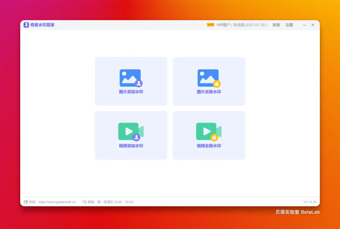 这是一款给图片和视频添加或去除水印的软件工具,它的主要功能就 4 个,给图片添加水印,去除水印,给视频添加水印,给视频去除水印。