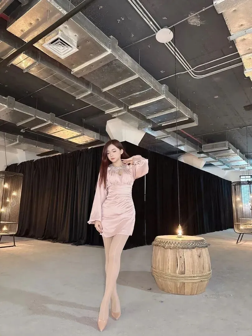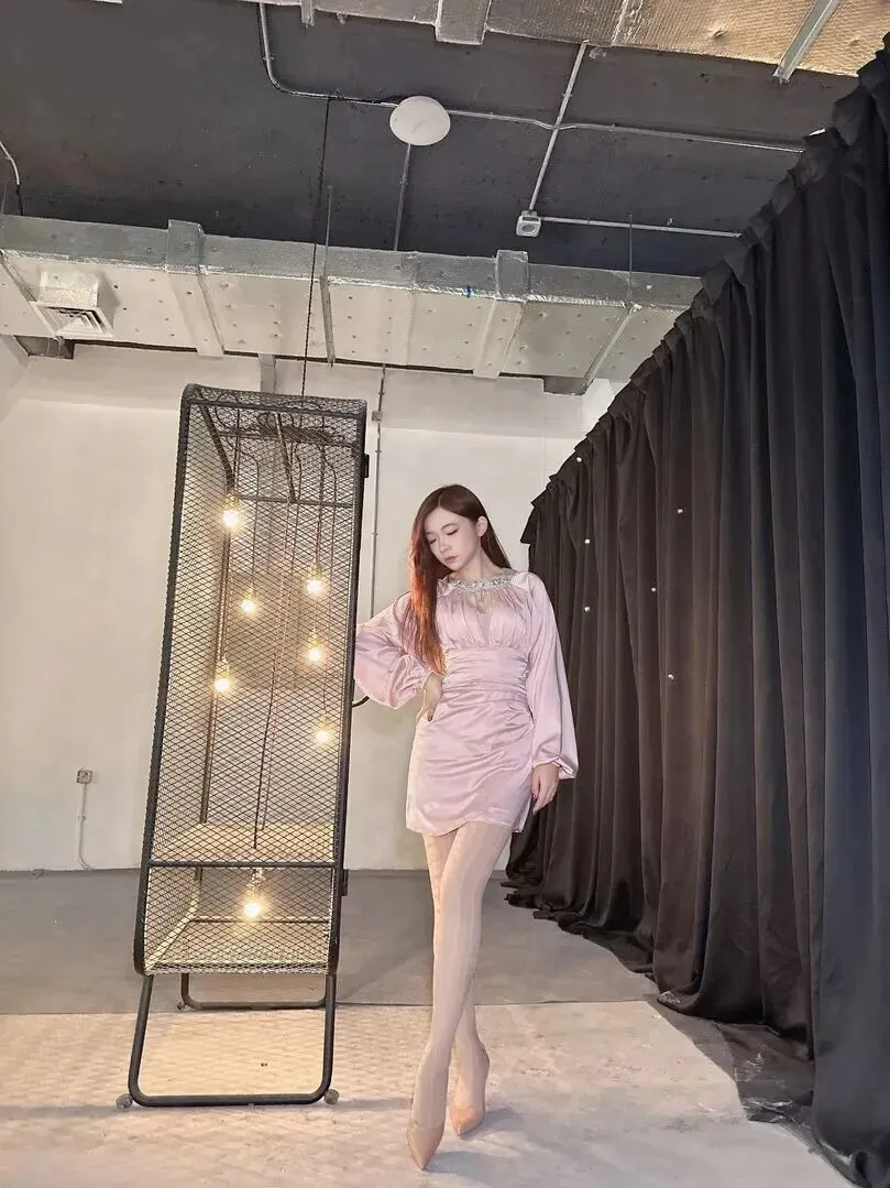 很多.人觉.得粉色.难搭配,其.实选.对色调反而.最简.单。我一般.会选同色系.的配饰,比.如浅粉色.的丝袜和.裸粉色高.跟鞋.。这样整.体看起来特.别和.谐,像油画.里的.渐变色彩。