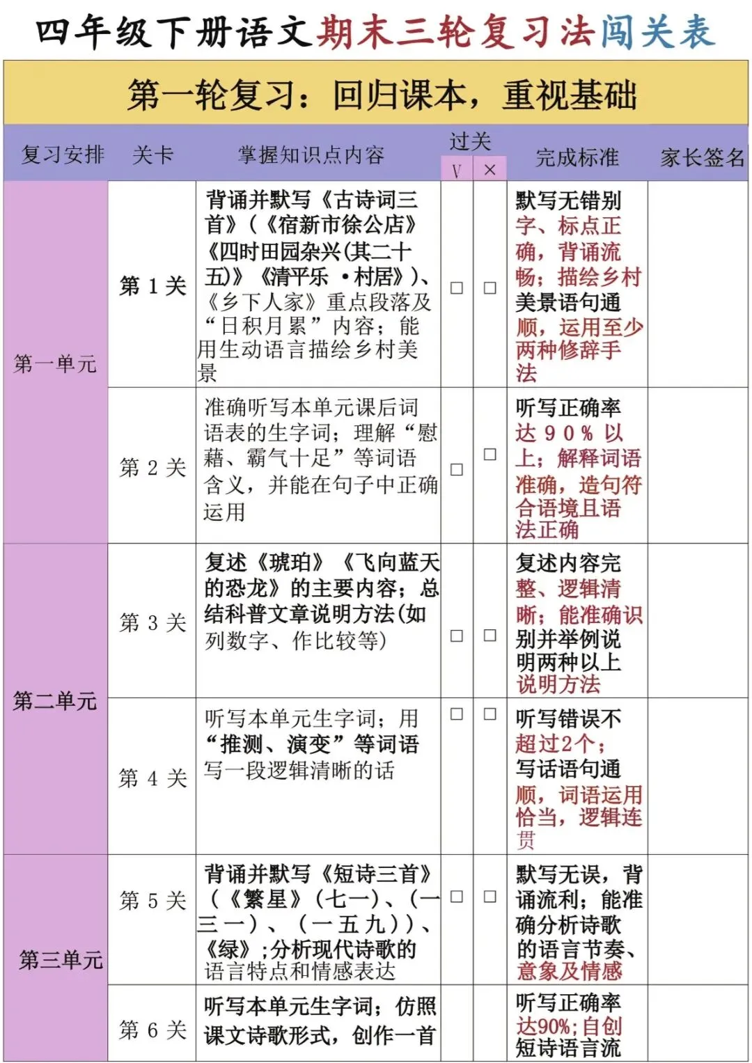 四年级(下)语文 三轮复习法