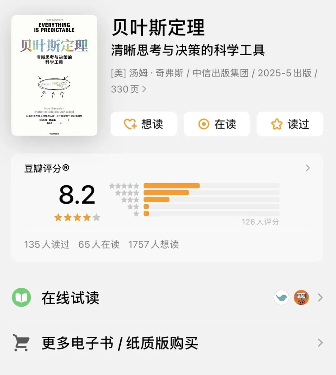 一个诞生于两百多年前的数学公式,为何能成为当今医学诊断、司法裁判、科学前沿乃至人工智能的基石?《贝叶斯定理》一书揭示,其不朽的魅力在于:它远非冰冷的算式,而是一套动态更新认知、在不确定性中做最优决策的思维框架。