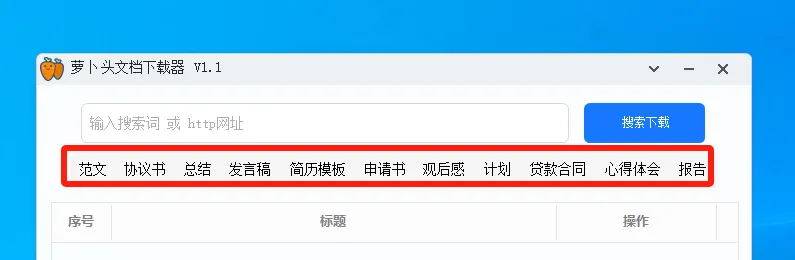 萝卜头文档下载器是一款Windows端的免费文档下载工具,可以帮助我们下载各种常用文档,降低获取成本!