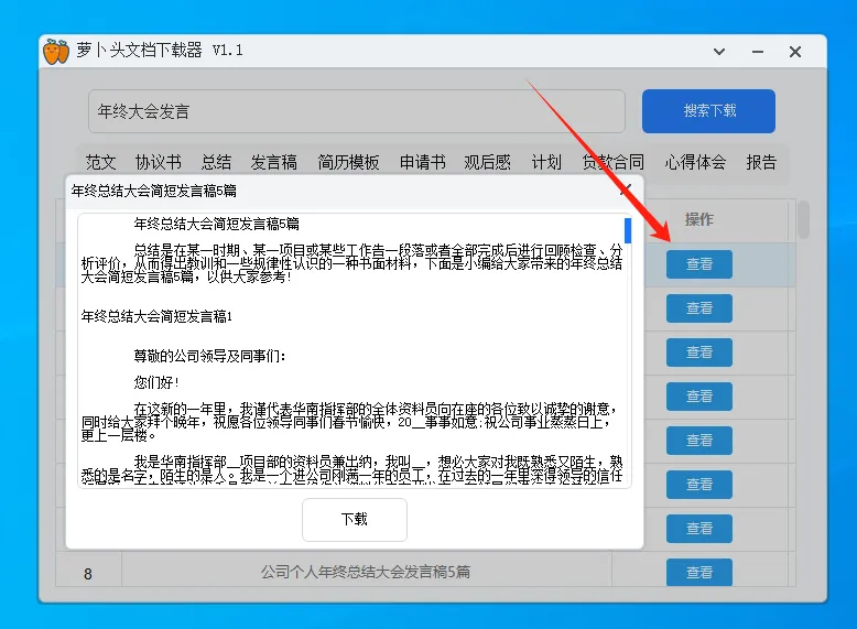支持文件预览,点击操作按钮下方的查看按钮,即可预览文档。如果文档符合自己的需要,再点下下载,即可将文档保存至本地~