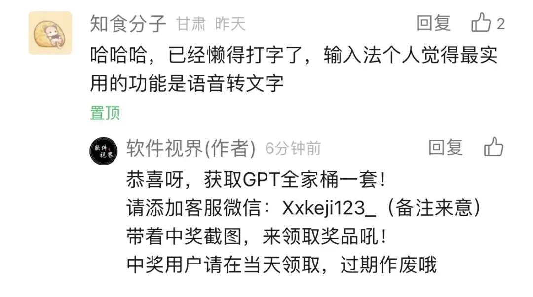 昨天中奖粉丝如下,小哥每天会在留言区抽选一位朋友赠送『GPT全家桶』一套,抽奖规则很简单,看留言内容随眼缘抽!恭喜下面这位朋友,请及时添加小哥好友领取!