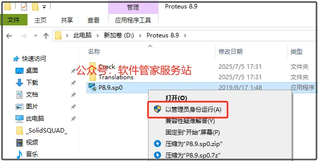 第三步:打开解压后的文件夹,找到【P8.9.sp0】安装程序,右击【以管理员身份运行】。