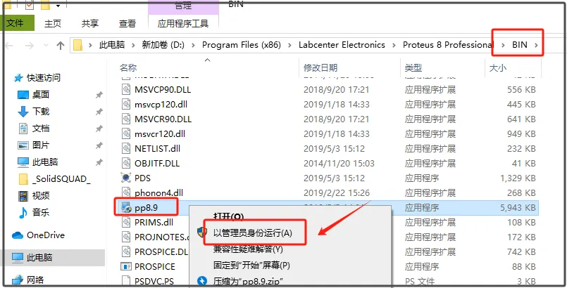 第三十二步:选中拷过来的【pp8.9】右击,【以管理员身份运行】。运行不会有任何反应,只要点运行就行。