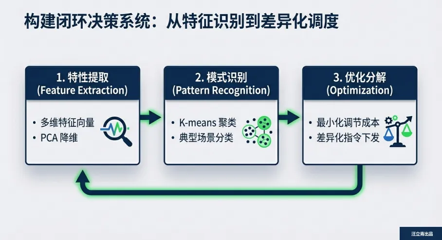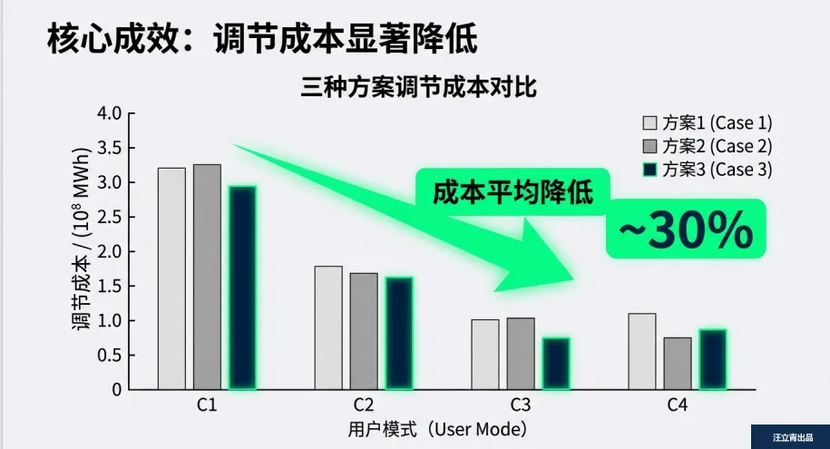 这套方案的关键在于“精准画像+智能分解”:先通过多维特征提取和K-means聚类,给1503个真实用户样本贴上用电标签,精准锁定不同用户的峰值特性、爬坡率等“响应基因”;再通过优化模型找到调节成本最低的分解路径,确保所有子指令加起来刚好满足电网总需求。实证数据给出了硬核答案:相比传统调度方案,新策略让调节成本平均降低30%,错配导致的成本激增问题彻底解决,峰谷跟随精度大幅提升,再也不会出现超调、欠调的情况。阴影面积大幅缩小的功率曲线,背后是用户舒适度不下降、虚拟电厂运营更高效、电网调节更精准的三方共赢。