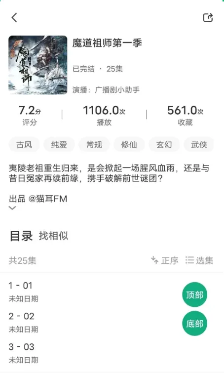 核心功能聚焦:摒弃冗余的娱乐、社交等附加功能,全程围绕“听书”核心需求设计,无无关推送干扰,让用户能够专注于音频内容本身,享受纯粹的听书体验。题材精准细分:在大品类下进一步细分内容标签,如“玄幻”分类下设有“重生逆袭”“东方玄幻”“异世大陆”等子标签,方便用户根据具体喜好快速定位内容,兼顾大众流行与小众需求。