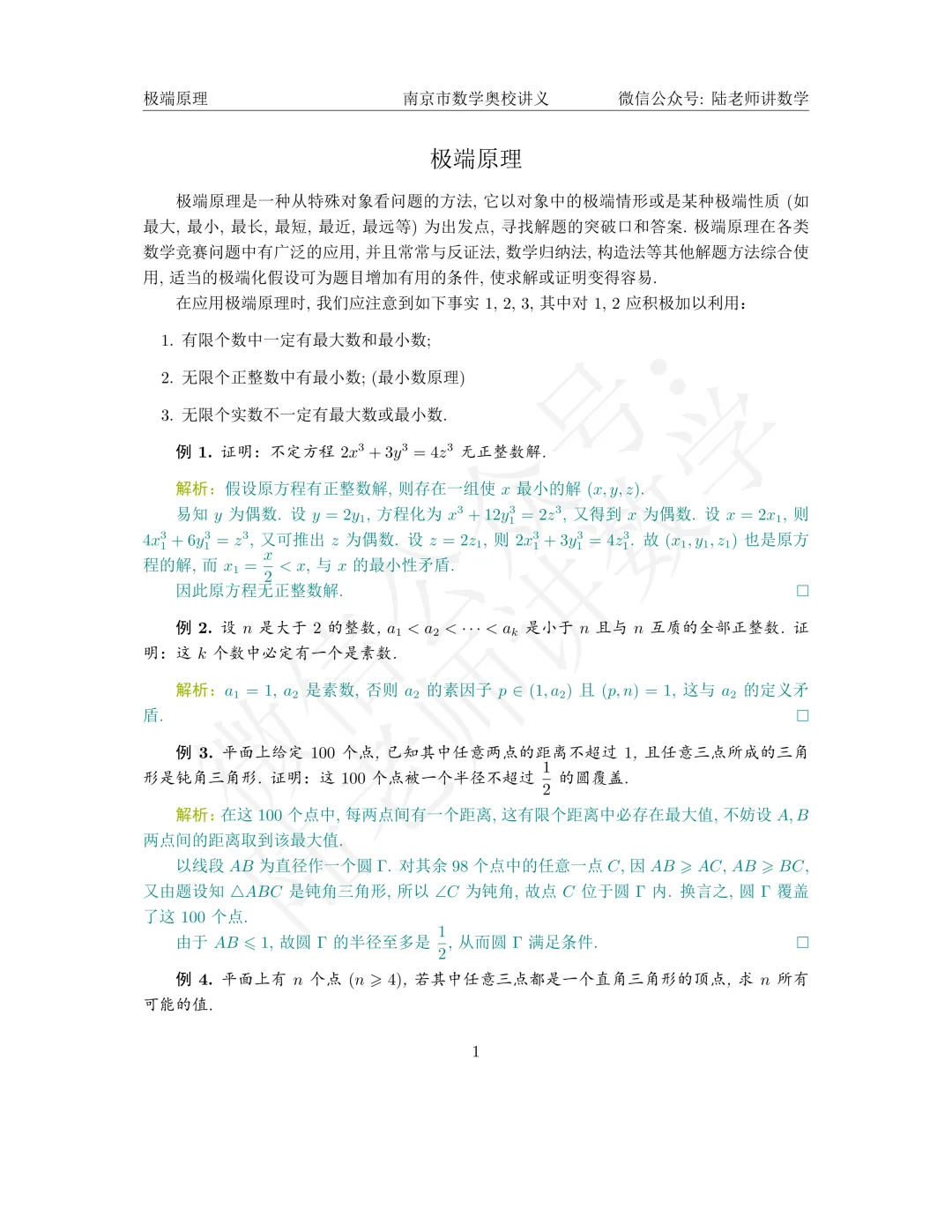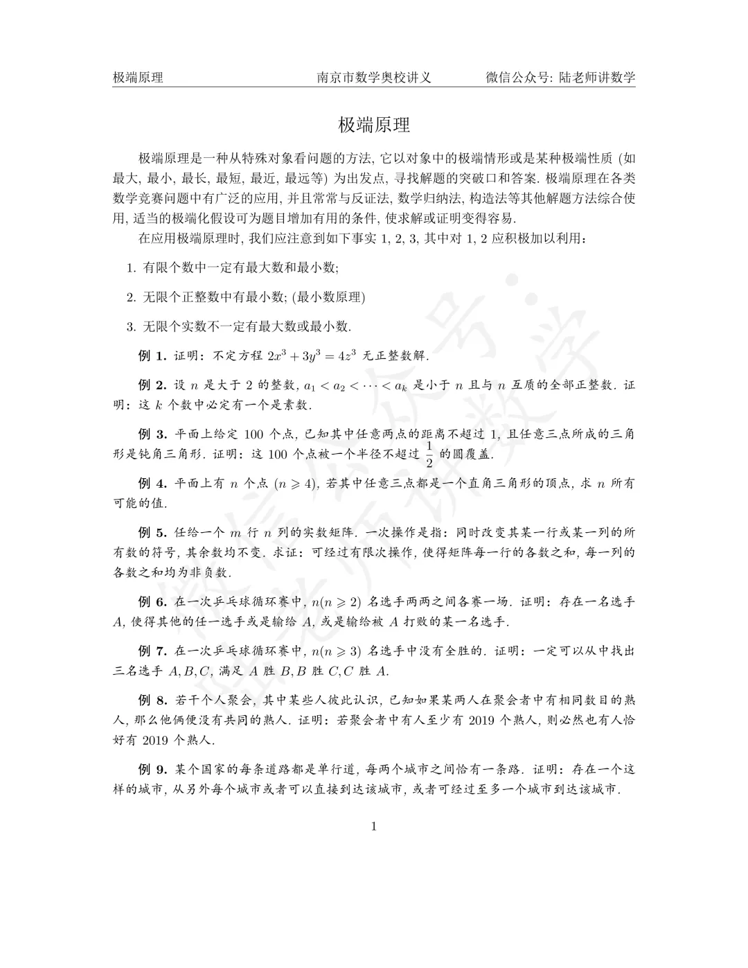 【极端原理】南京市数学奥校讲义pdf及解析