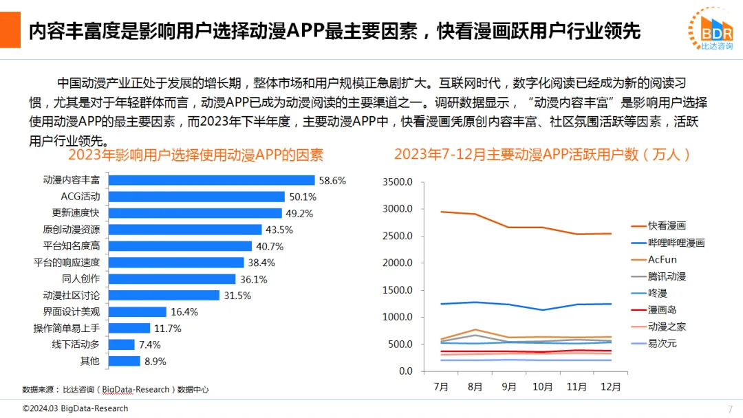 内容丰富度是影响用户选择动漫APP最主要因素,快看漫画活跃用户行业领先