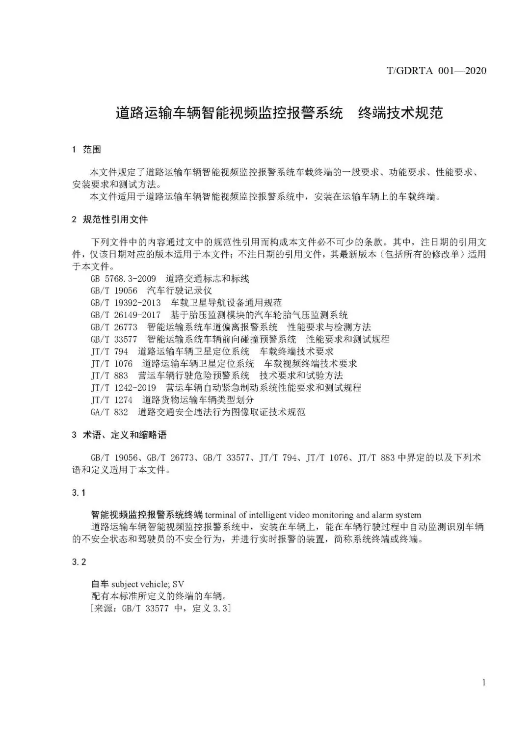 免费下载!10.T/GDRTA 001-2020 道路运输车辆智能视频监控报警系统终端技术规范