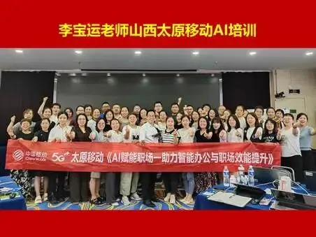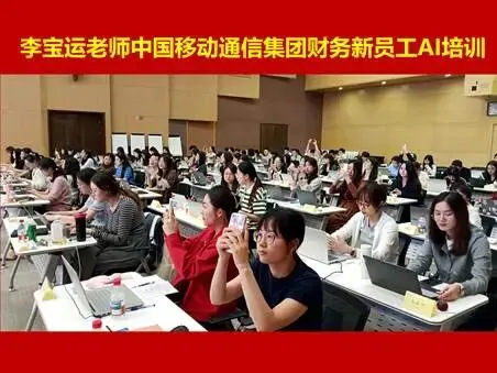 2025年9月20日,中国移动党校组织的全国财务人员专项培训,90多人,课程满意度100%。曾多次为中国移动党校、中国移动通信集团研究院、集团政企各部门进行AI培训,满意度均在99%以上。