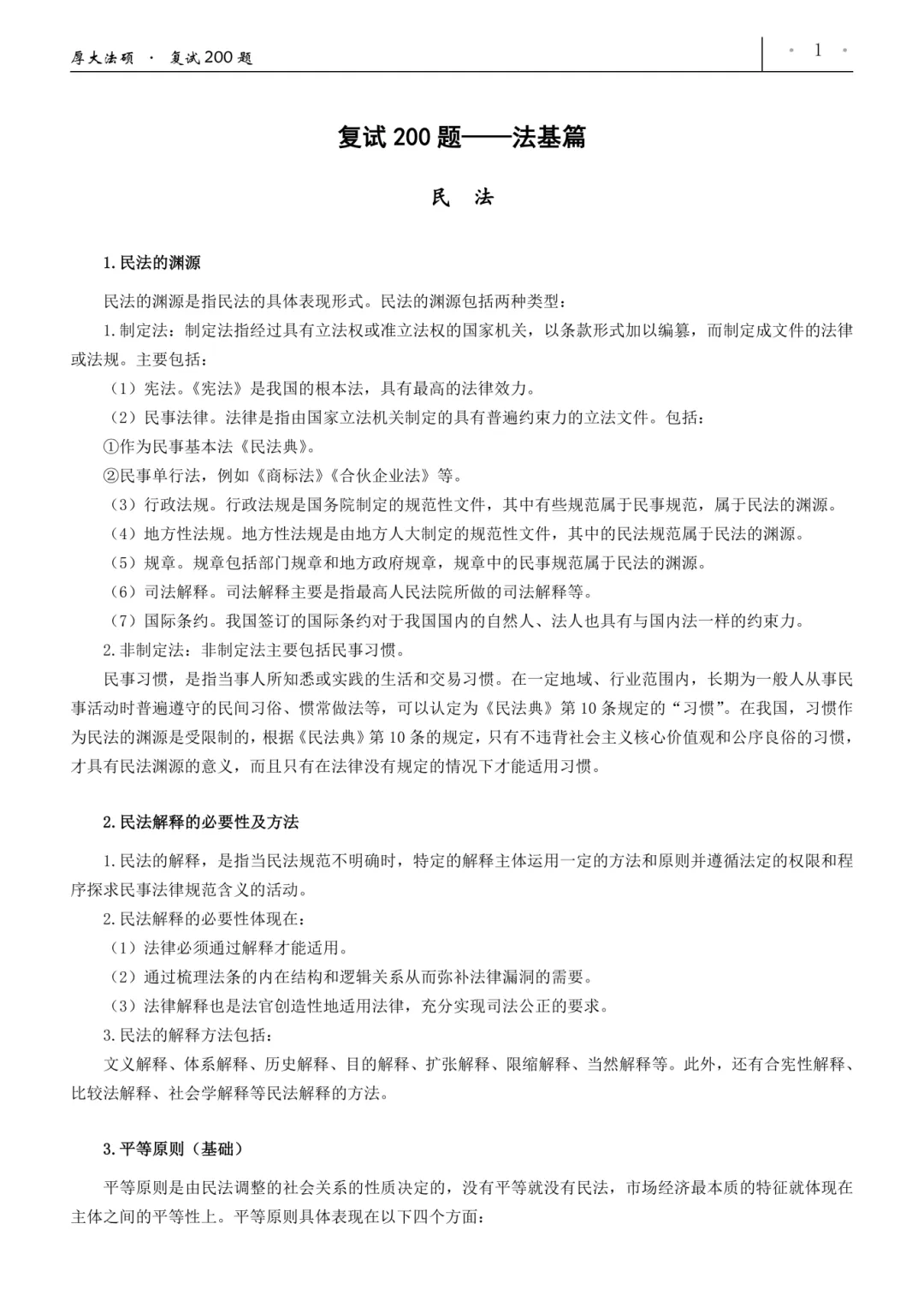 今天厚厚给大家分享的这份【法硕考研复试200题】,就是以考试分析为核心,挑选了其中最重要的知识点整理成200题,适合复试前巩固基础知识和检测掌握程度使用!