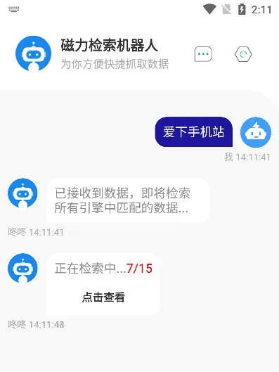 磁力搜索精灵软件是一款简洁的磁力搜索精灵哦。其资源查找方式采用聊天交互的形式展现,能为你带来前所未有的搜索感受。这款软件拥有众多搜索渠道,磁力资源极其充沛。基本上各类资源都能轻松寻得,并且资源的清晰度、文件大小等信息都会明确标注。资源依据热门程度进行排列,操作便捷,你能够优先下载高品质的资源。