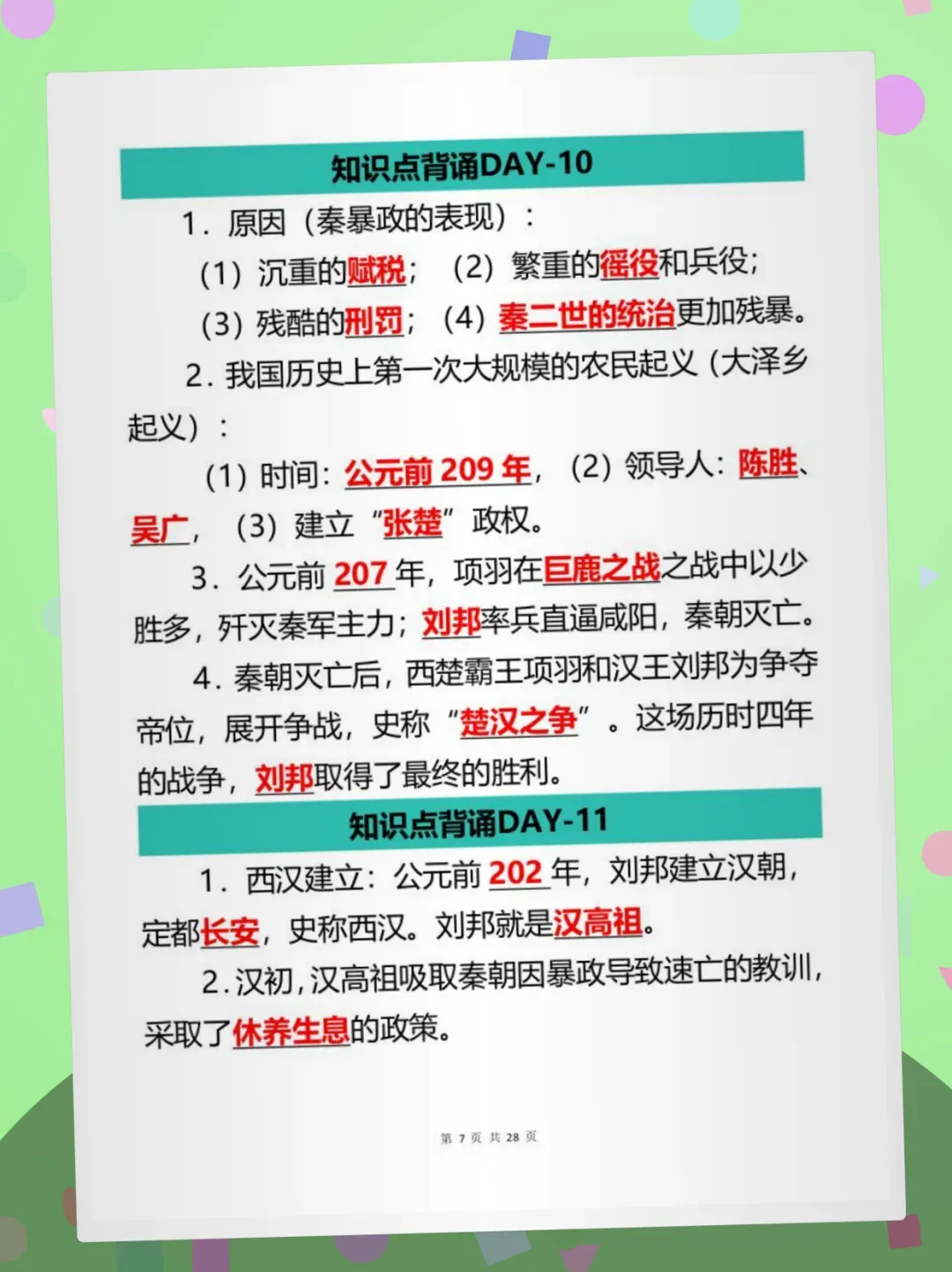 【免费获取】七上历史必背20天晨读晚默pdf【可下载打印】