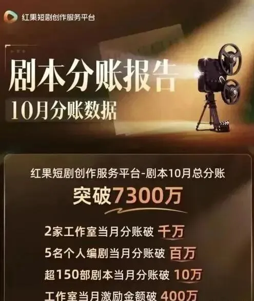 2025年,红果短剧剧本总分账已超过7300万元。有工作室月均收益突破千万,另有5名个人编剧实现月入百万。与过去网文靠码字挣辛苦钱不同,短剧创作已进化为一条快周转、高收益、低门槛的内容生产线。