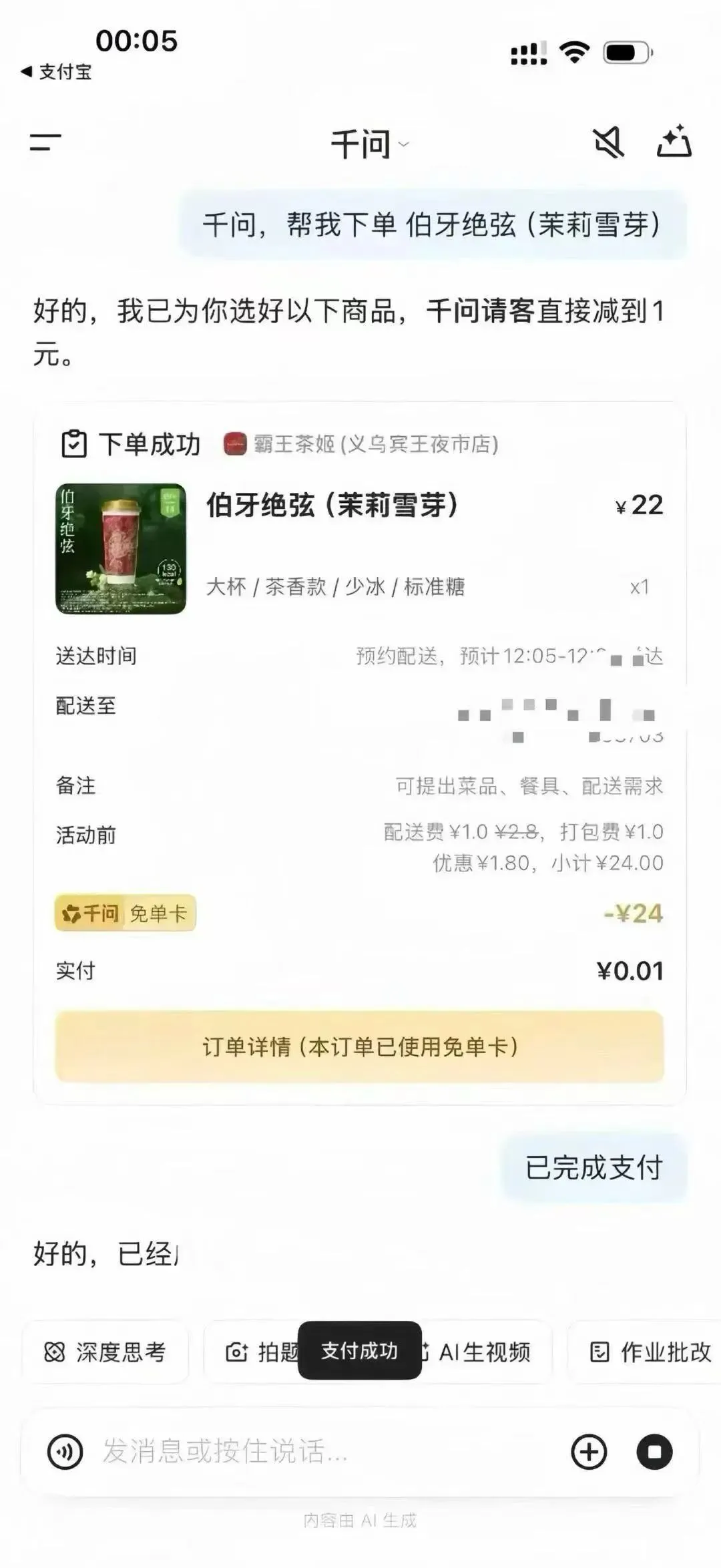 下载千问app,扫下面二维码 对话框输入帮我点杯奶茶-可以领一张25无门槛外卖券,所有人都有28号过期,先领
