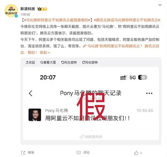 腾讯云回应网传“马化腾称阿里云不如腾讯云”言论:截图是假的