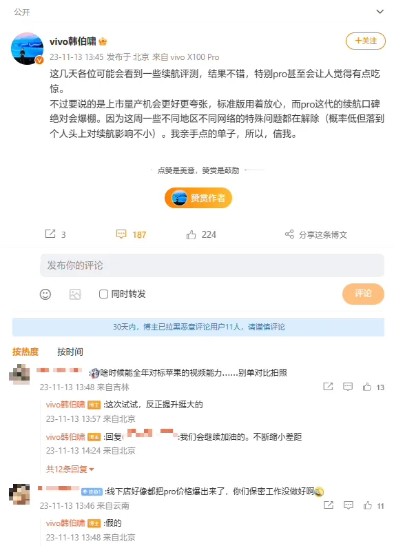 vivo 产品经理韩伯啸:X100 Pro 手机续航“让人有点吃惊”“口碑绝对会爆棚”