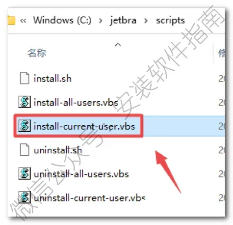 11、双击打开复制过来的“jetbra”文件夹,再打开“scripts”文件夹,双击运行“install-current-user.vbs”文件