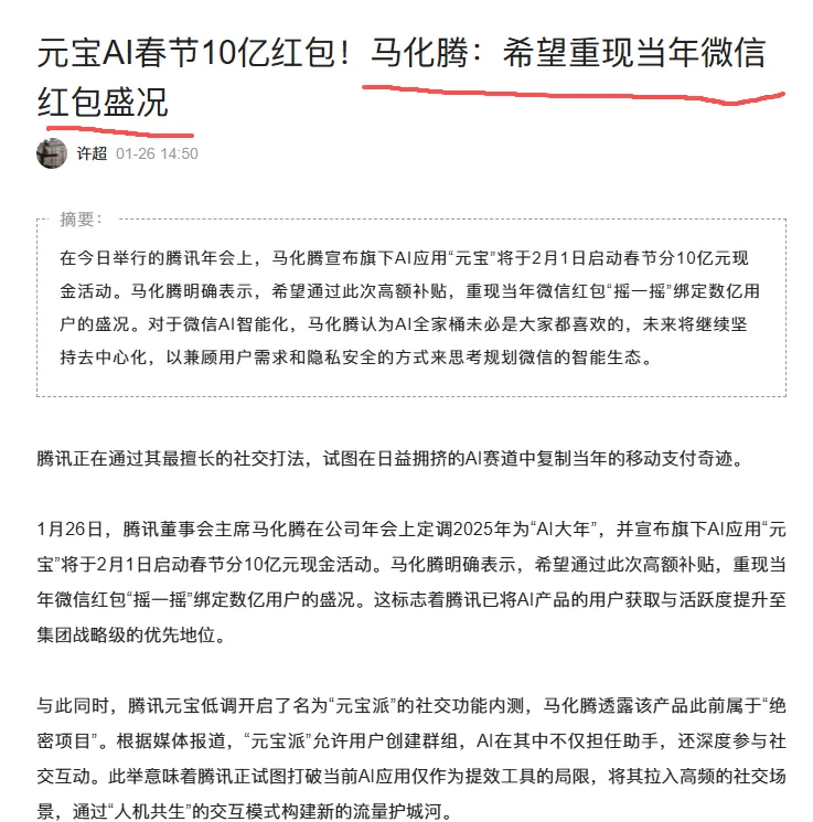 腾讯是All in 元宝App,都开始大撒币的推广,我也参加了一下,分了5元给我🥲。暂时看不出来腾讯拉新是为了干嘛?