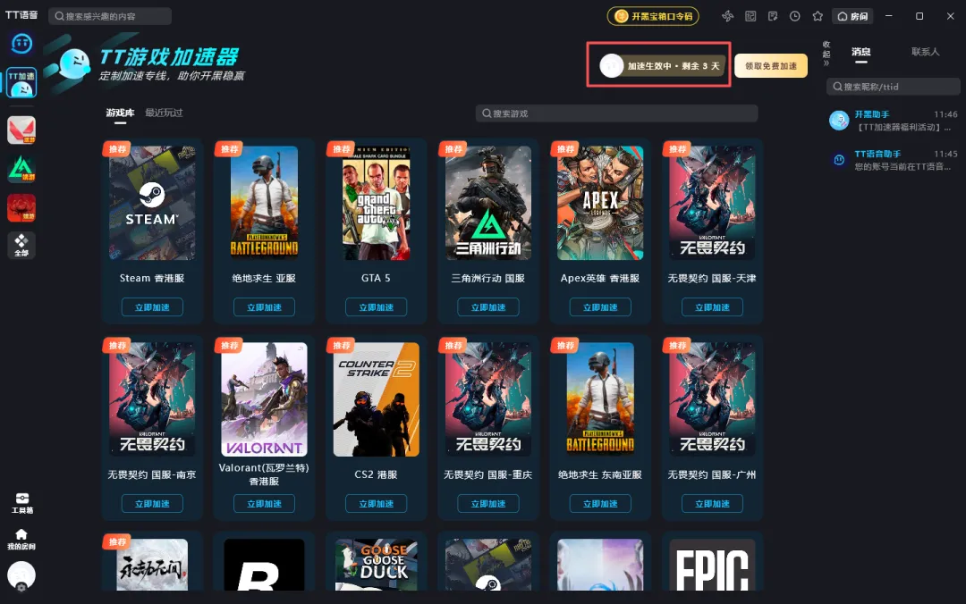 集语音、加速器、游戏dom于一身的免费软件超好用!你懂得! 语音+加速器+游戏DOM于一体的软件,最主要的是都免费使用!大家抓紧时间! 登录就送3天免费加速器月卡1张,在首张月卡到期之前,再获得一张加速器月卡,届时有端内助手推送通知。(自动续期且生效)不用操作。 界面: 产品介绍: 提供多种游戏专业工具、游戏性能加速器、游戏Mod:免会员,解锁游戏新体验三角洲行动工具:快速入门三角洲,各种物资一键秒查。 上来免费送三天加速,邀请好友再送30天! 相关链接请大家关注并私信:0206 即可获取!
