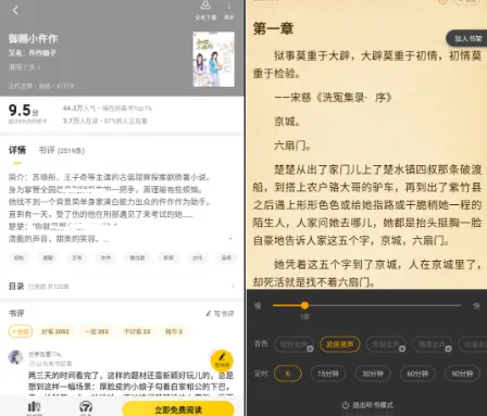 看小说可以全部免费看,而且还可以对小说进行语音朗读,可以自由选择说话的人声,更加有真实感!