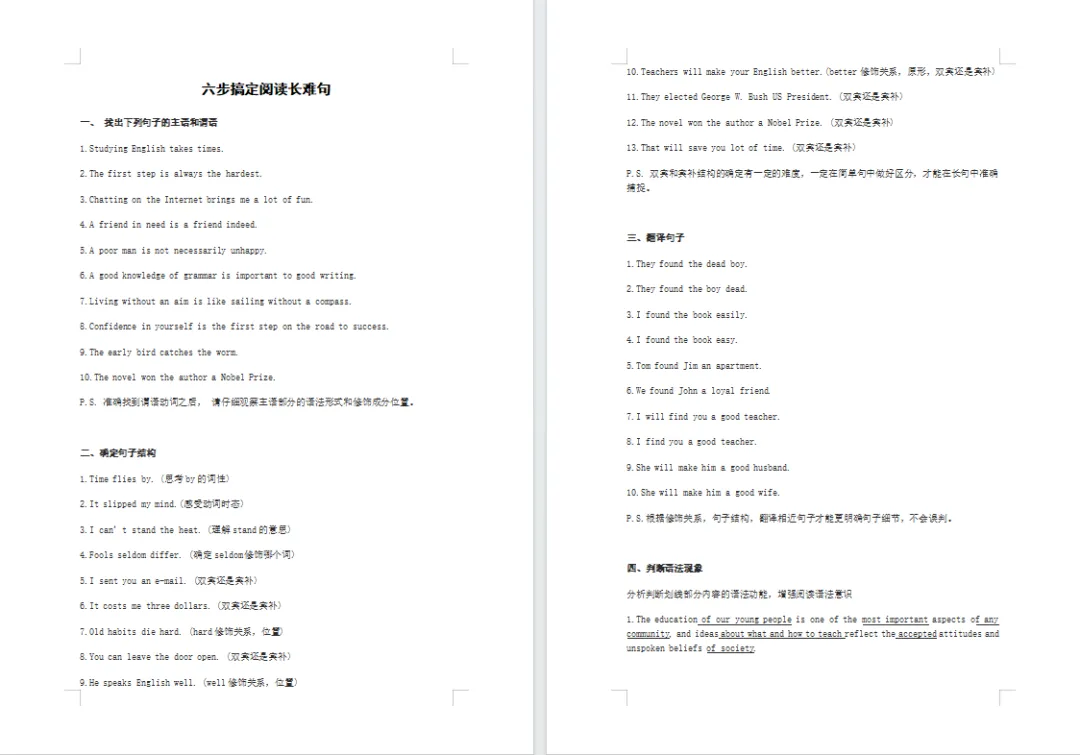一个文档教你搞定雅思阅读长难句!6页免费分享