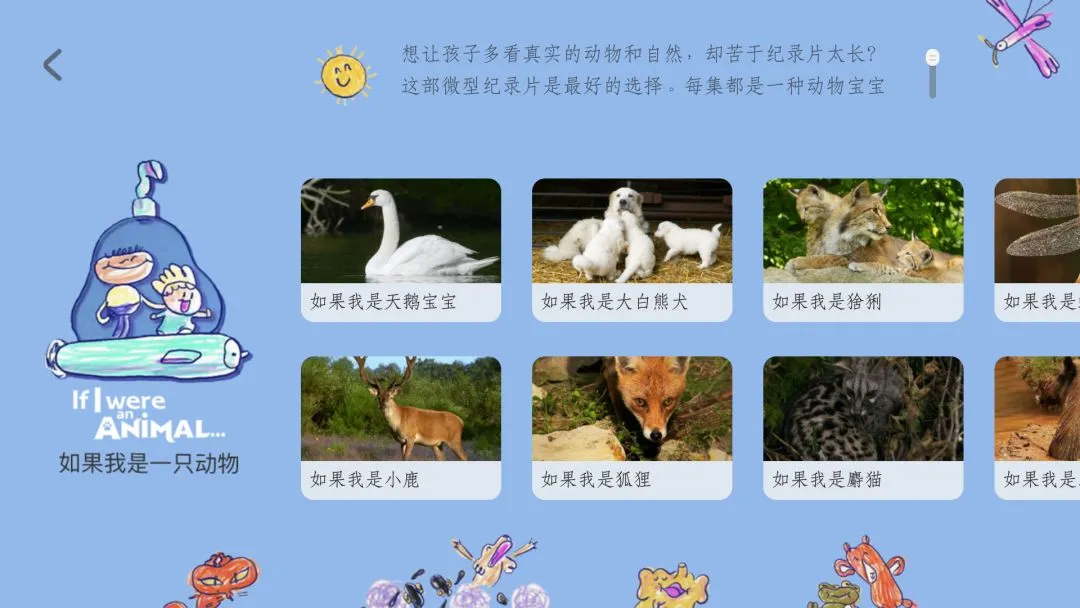 纪录片,有Discovery、BBC,还有从儿童视角出发,专门为儿童打造的纪录片《如果我是一只动物》。