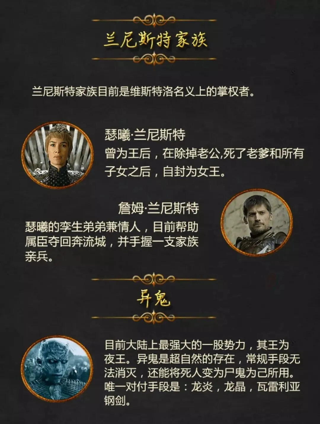 为争夺铁王座而打打杀杀的各个家族吗