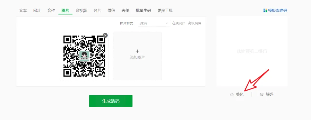 网站可以文本、网址、文件、图片、微信、批量生成等等,能生成的方式种类非常多。