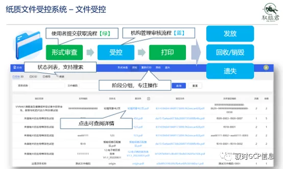 驭临君一直致力于解决行业难题,我们结合以往临床试验及其系统开发的经验,集中公司技术力量,协同规范领先的机构,开发了一套文件受控系统,确保纸质文件的受控管理。以应对大部分医院仍然使用纸质文件的情况,而不是简单地将纸质文件打印出来,以减少风险,确保真实性。